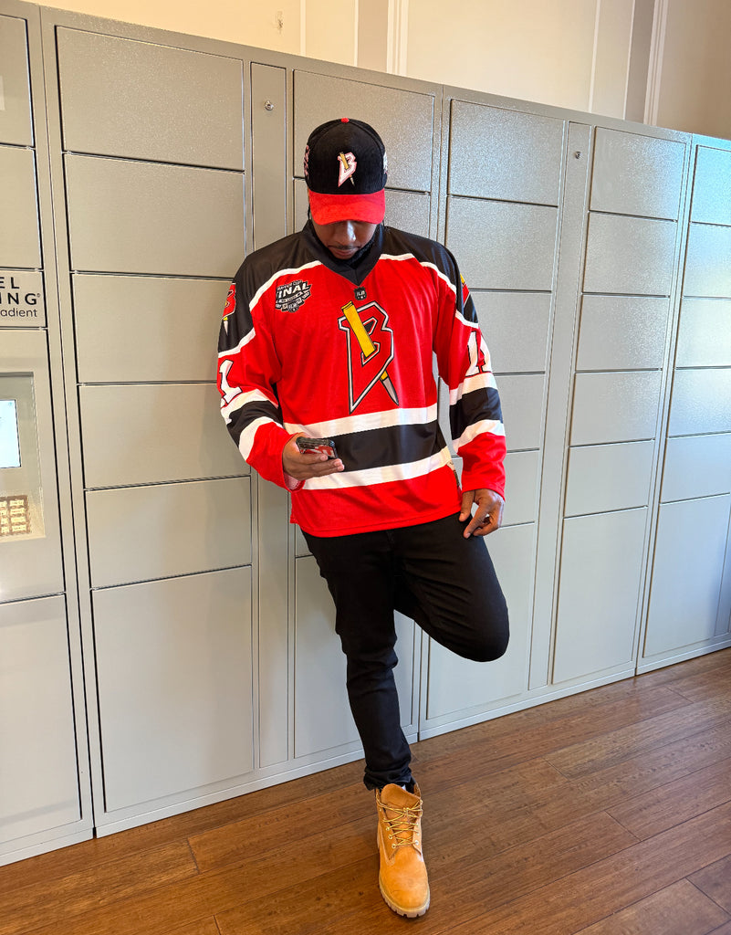 THIS IS A FASHION FIT MENS HOCKEY JERSEY IT IS MEANT TO COVER THE WRIST AND BE BAGGY THE WRIST. WE CAN NOT EXCHANGE OR REFUND IF YOU DO NOT LIKE THE FIT. THIS IS A COMPUTER GENERATED PICTURE, COLOR MAY VARY SLIGHTLY DARKER OR LIGHTER IN PERSON.